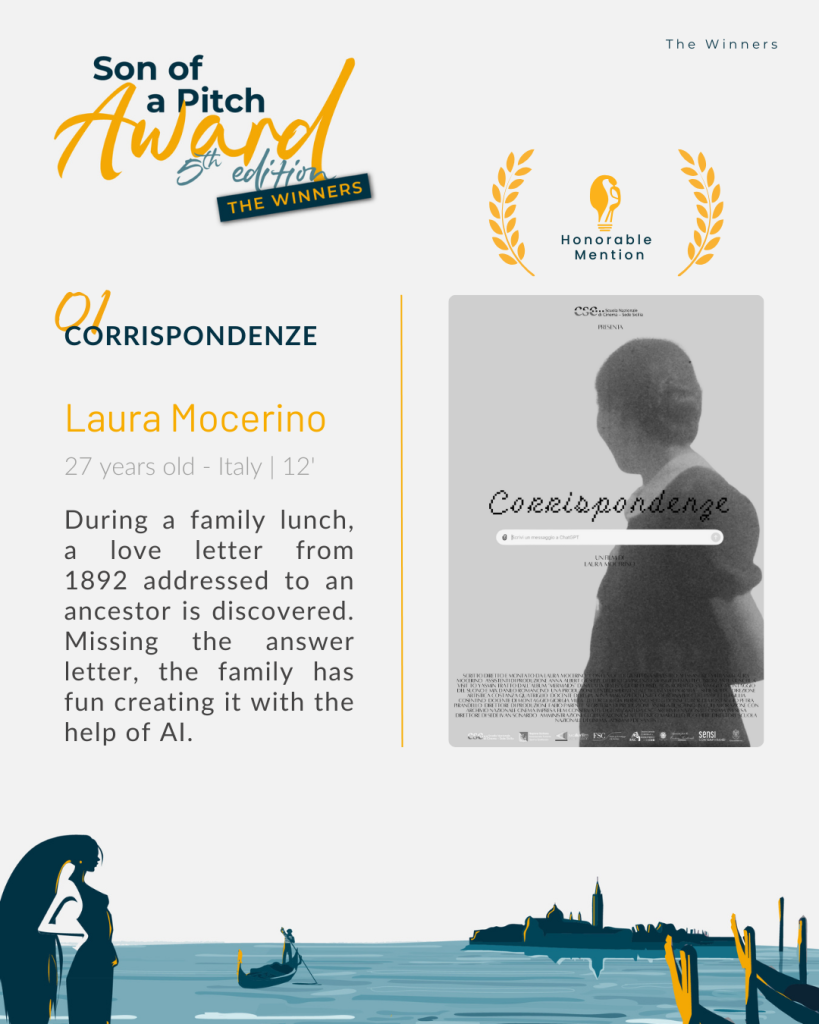 “Una famiglia riunita a pranzo trova una lettera d’amore del 1892, scritta da uno sconosciuto a un loro antenato. Mancando la risposta, decidono di inventarla insieme, divertendosi con l’aiuto dell’Intelligenza Artificiale”.